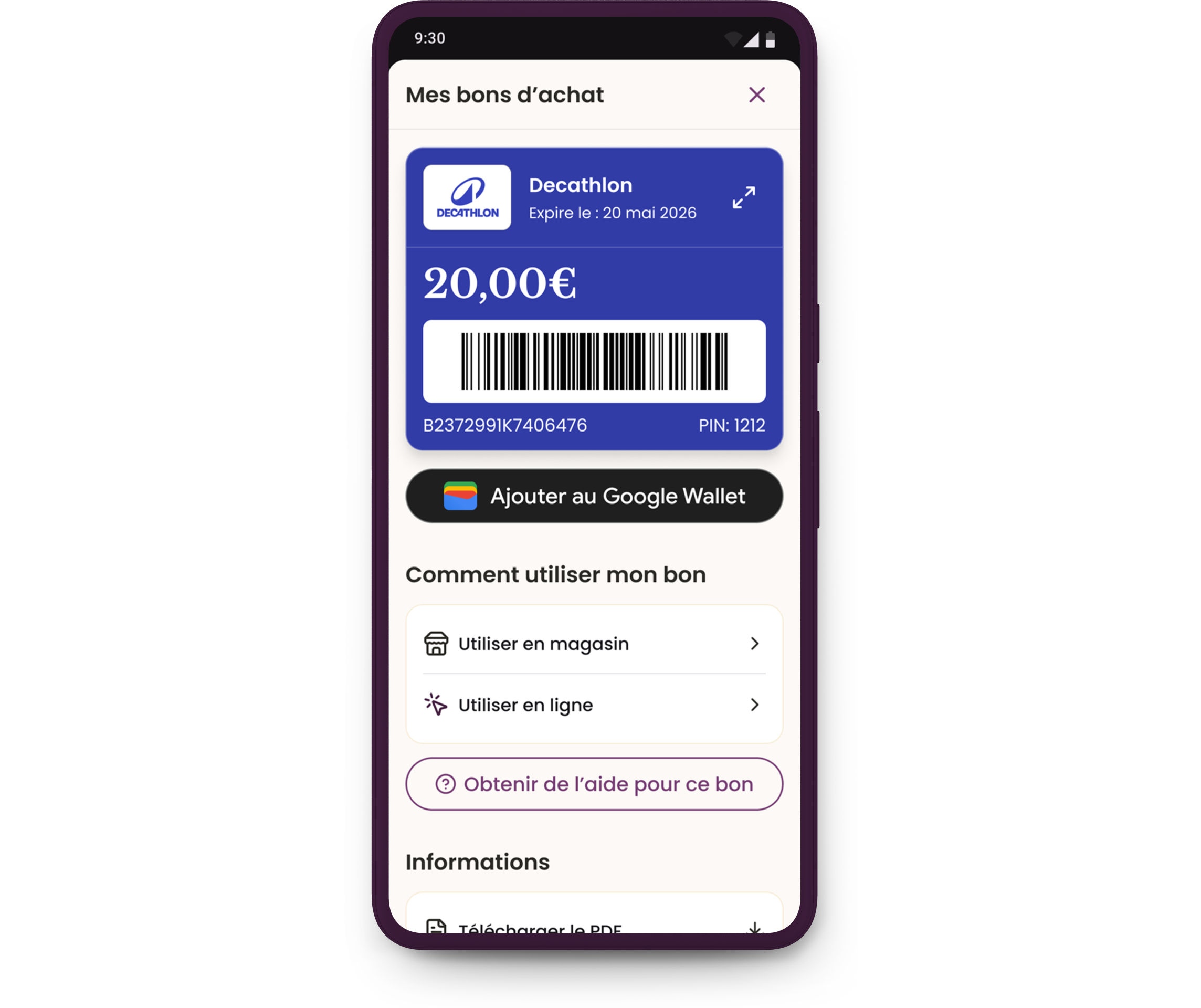 Accès immédiat à des cartes cadeaux digitales et avantages exclusifs. Aucune gestion compliquée, une liberté totale pour chacun.