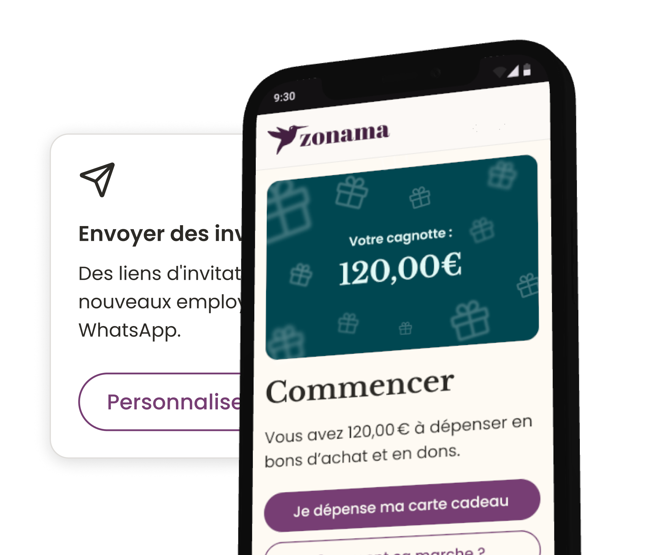 Envoyez à vos salariés des cartes cadeaux digitales, livrées instantanément par email, SMS ou WhatsApp. Aucun compte, mot de passe ou application requis.